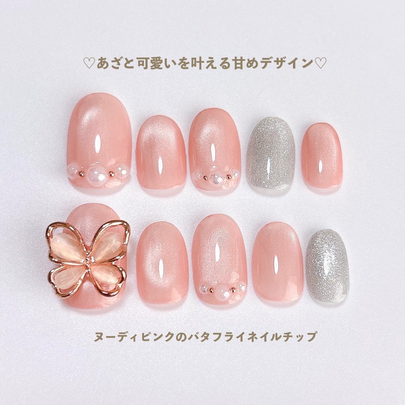 【恋され女子のうる艶ネイル】ピンク マグネットネイル バタフライ 蝶々/ブライダル 結婚式 デート 韓国