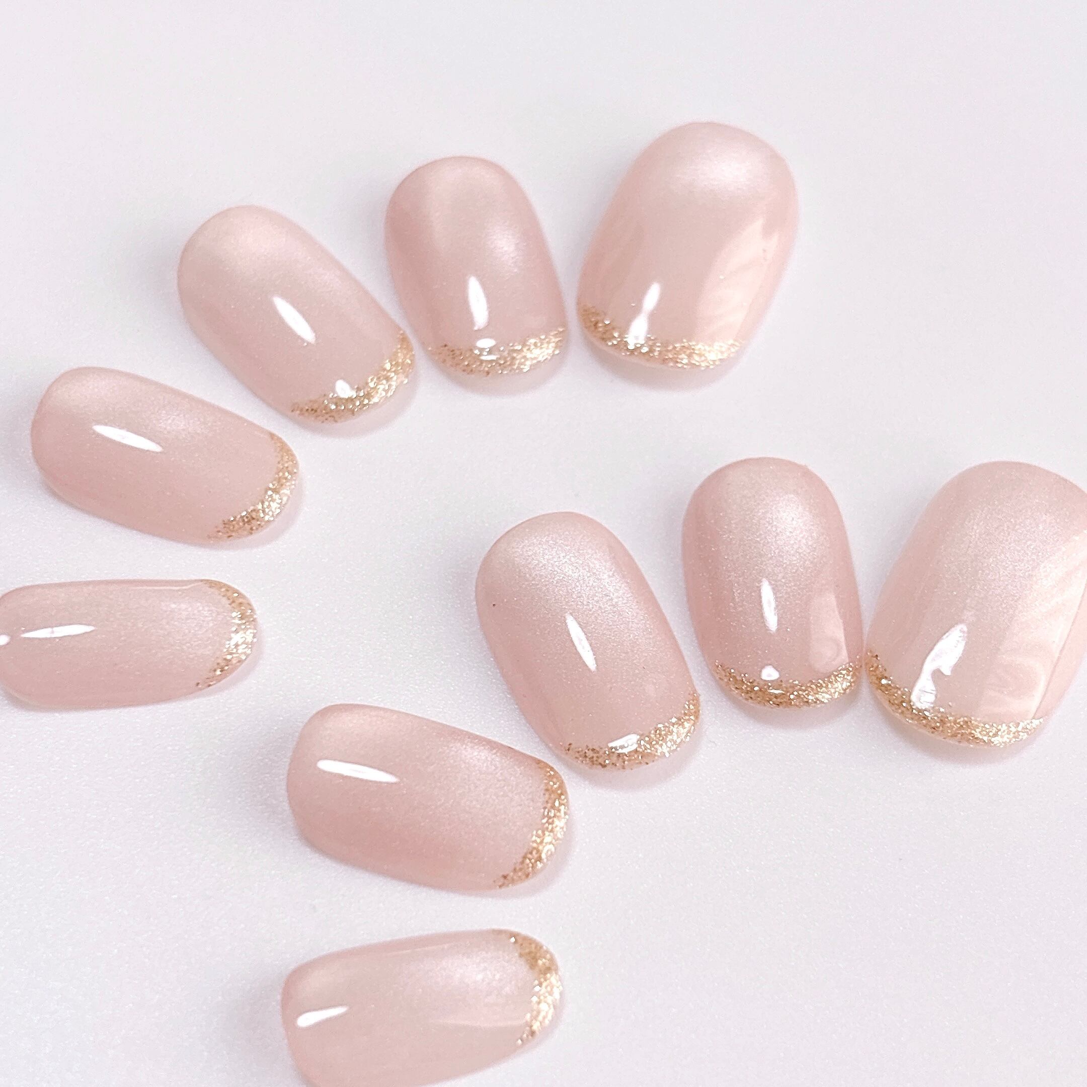 ゴールドラメのフレンチデザインがさりげない華やかさをプラスしてくれ、どんな服装にも合わせやすく、毎日のおしゃれを楽しめます。