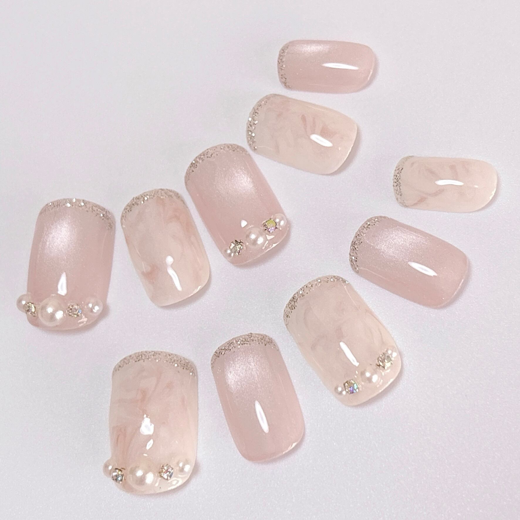 【思わず見惚れる恋色ネイル】ペールピンク マグネットネイル ガラスフレンチ ニュアンスネイル/ブライダル 韓国 春
