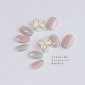 【大人のうるうる可愛げネイルチップ】シルクグレージュ マグネット ガラスフレンチ バタフライパーツ 蝶々 ブライダル