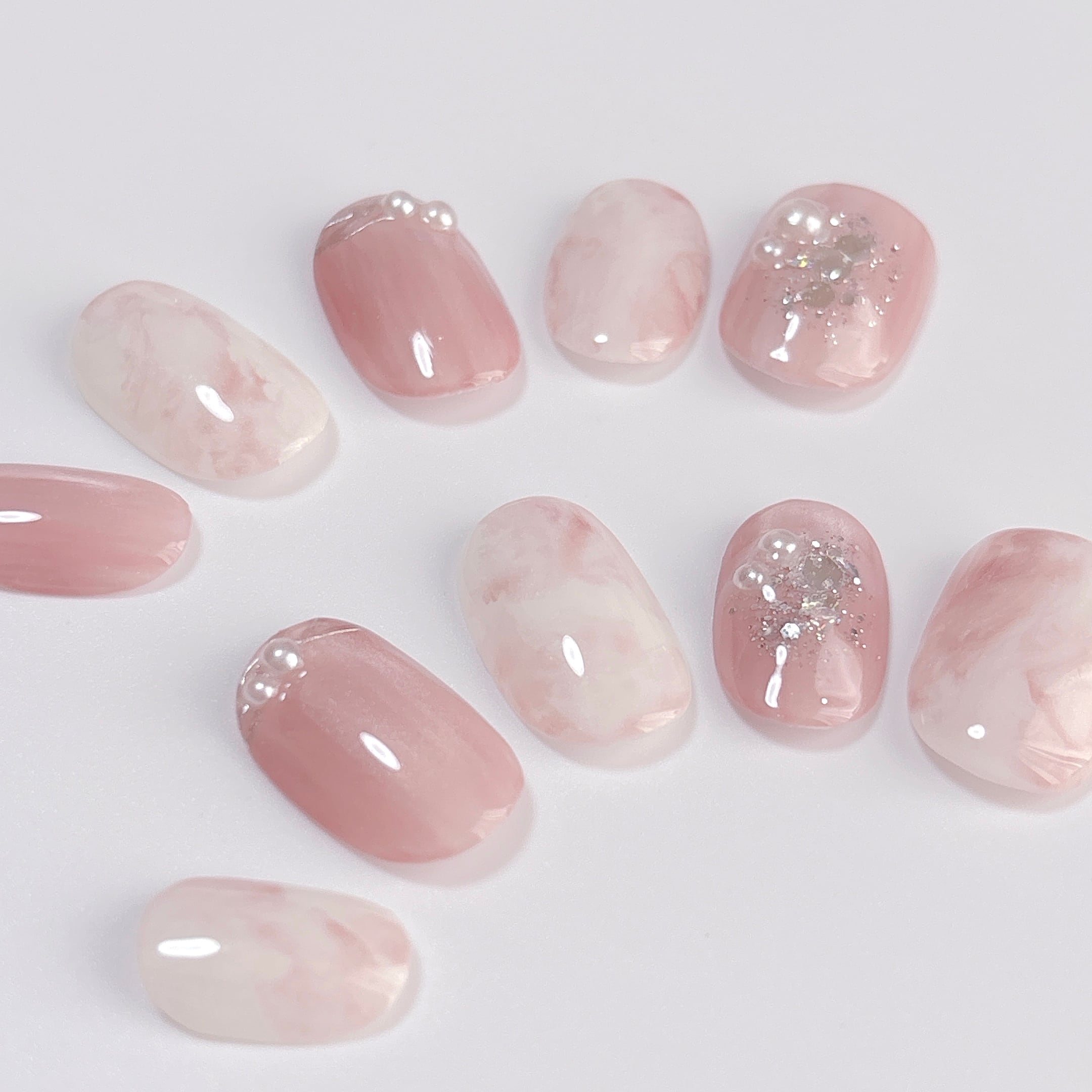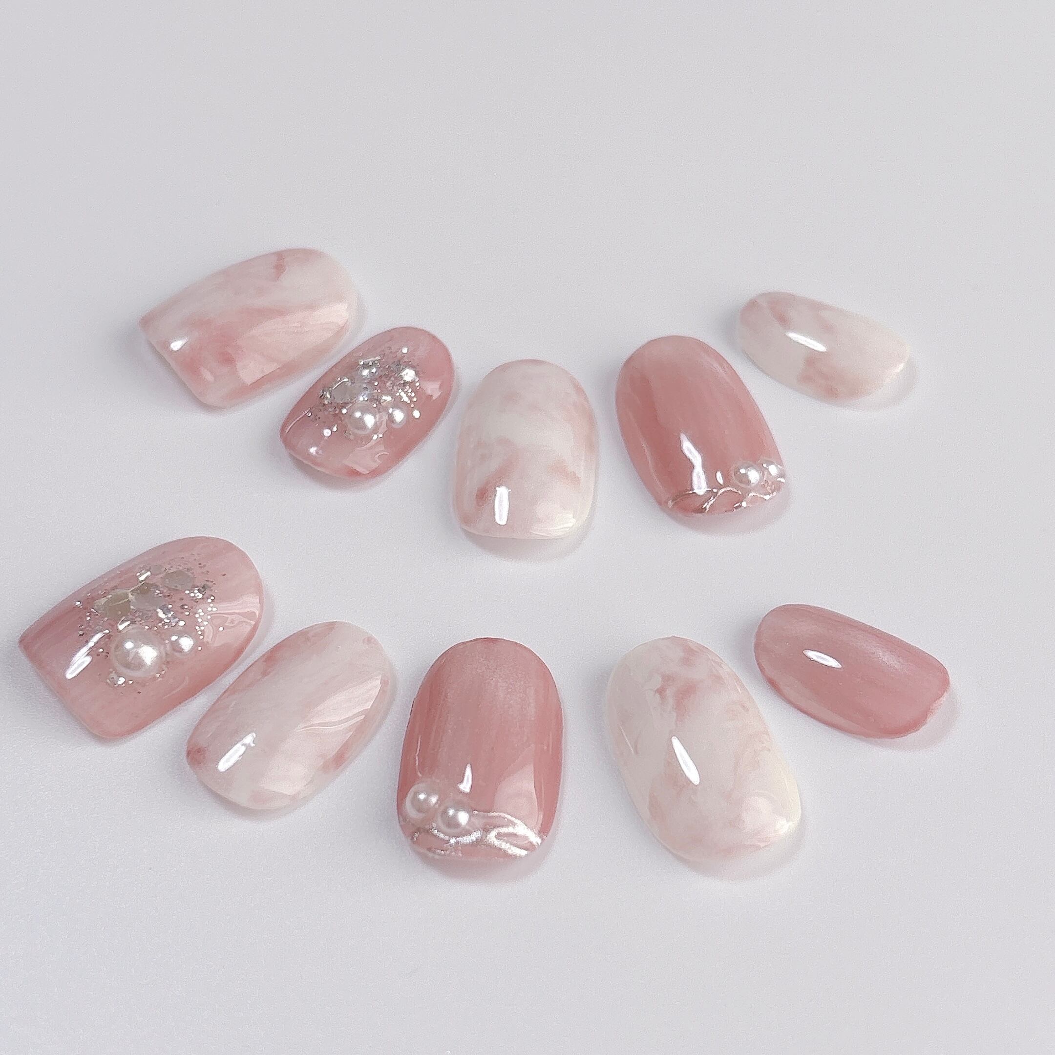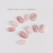 くすみピンクをベースに、うるうるのマグネットネイルとエレガントな大理石風マーブル模様を組み合わせたネイルチップです。
