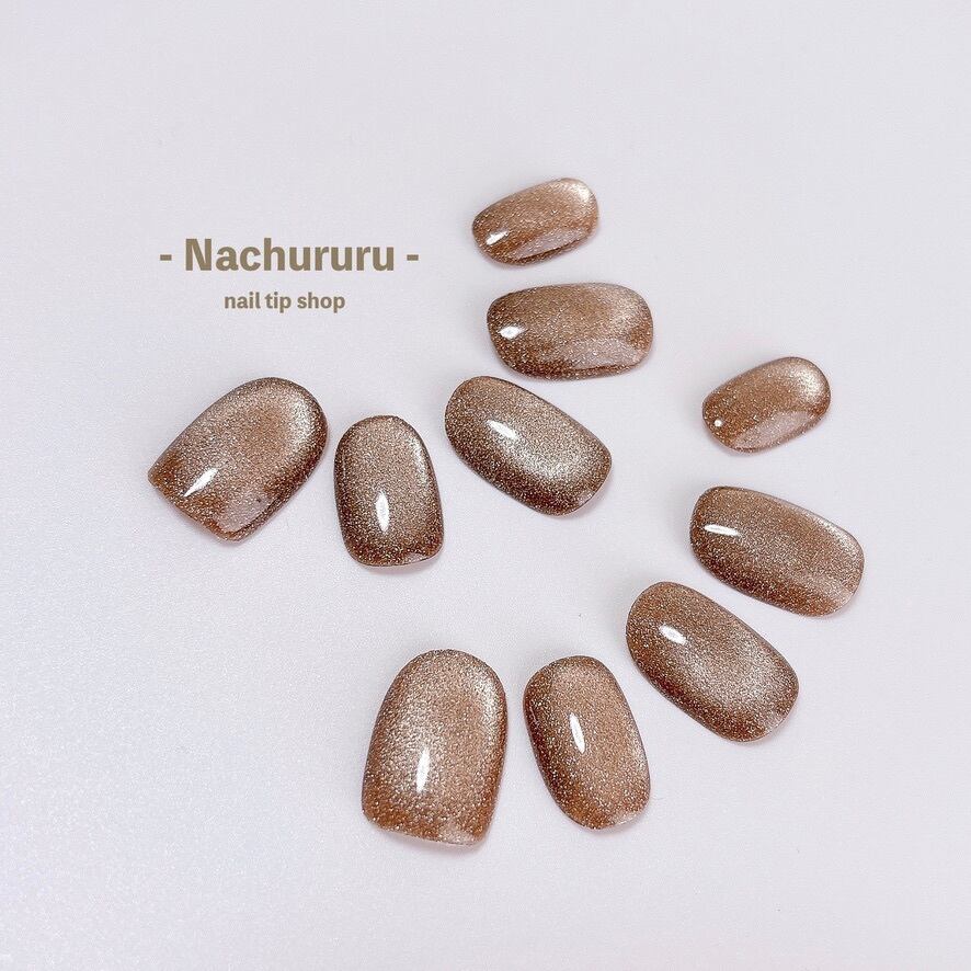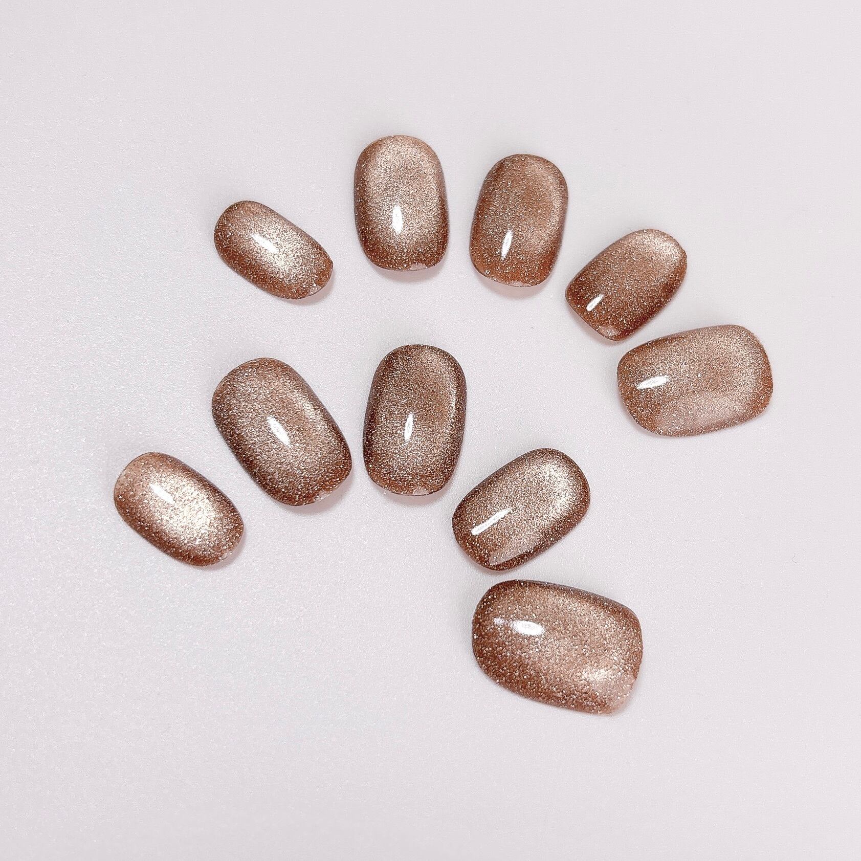 【深みのある大人の透明感】ゴールドブラウン マグネット ワンカラー ネイルチップ シンプル オフィス フォーマル 秋