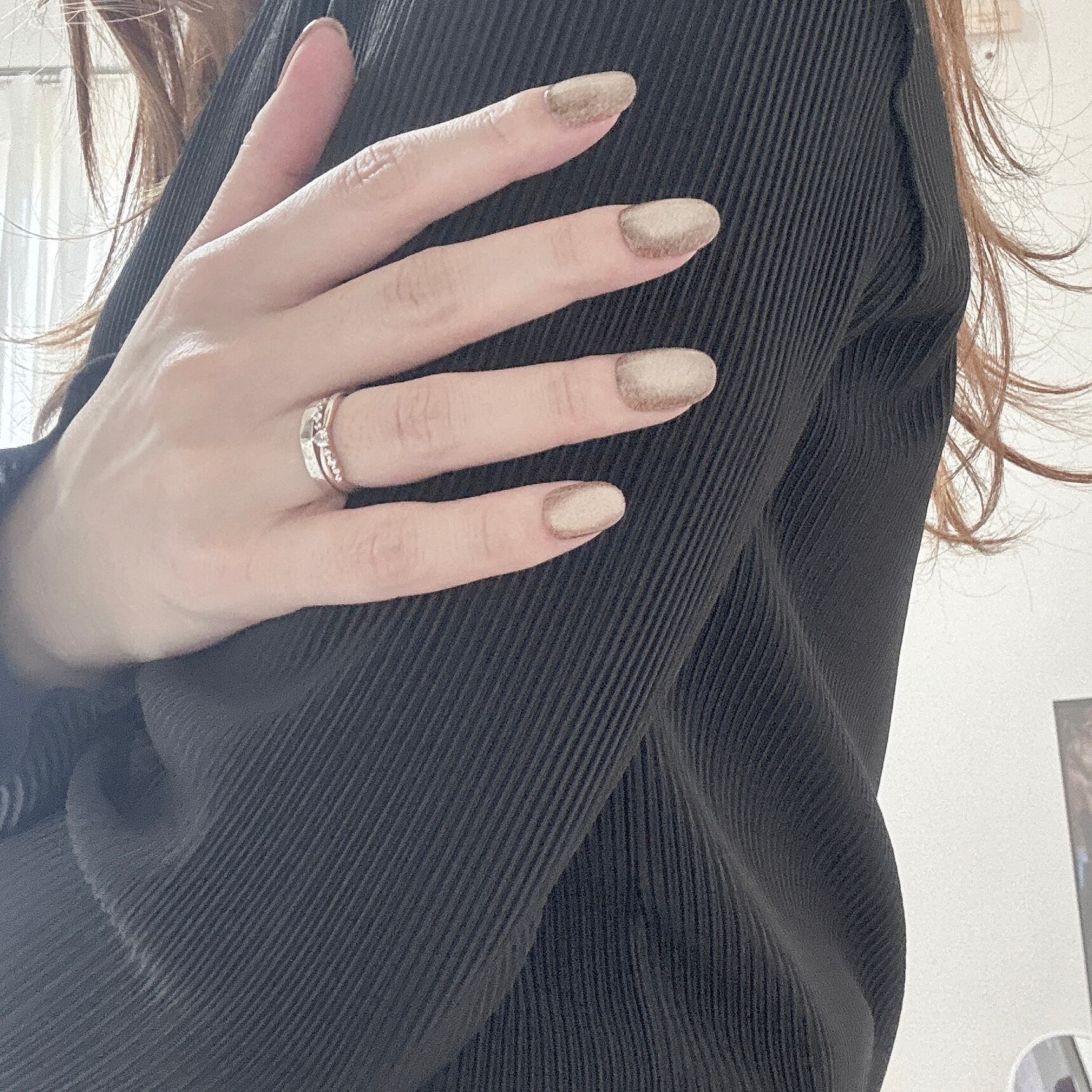 肌なじみの良いゴールドブラウンに、角度によって繊細に輝くきらめきをプラス。シンプルながら上品な存在感で、手元を華やかに彩ります。