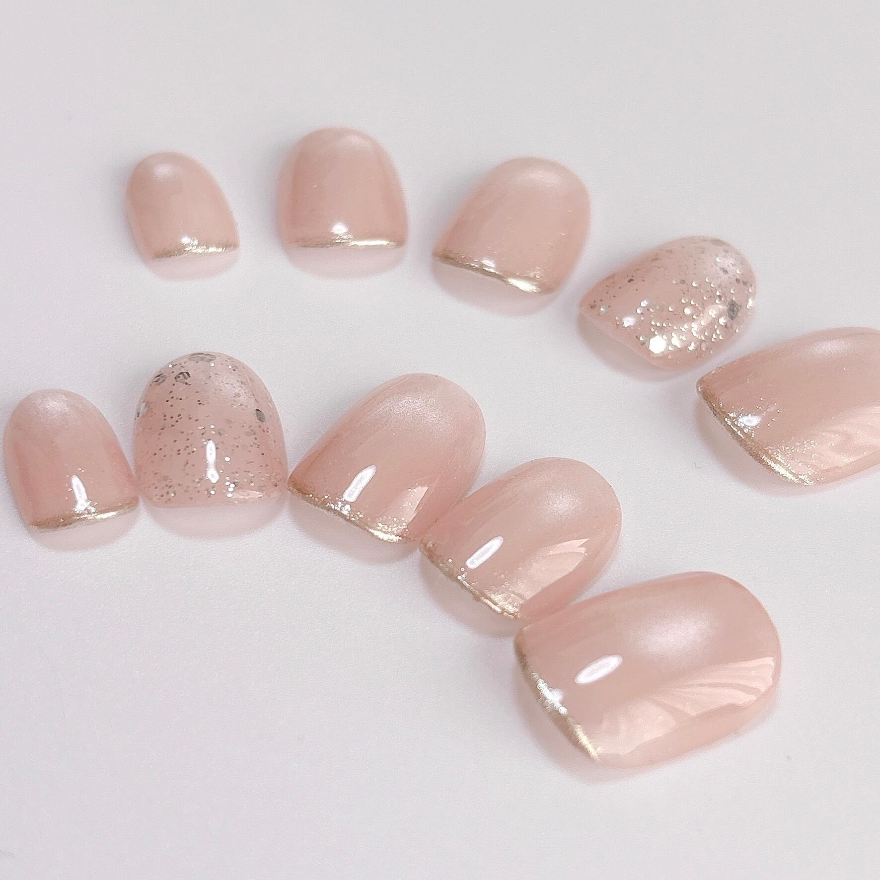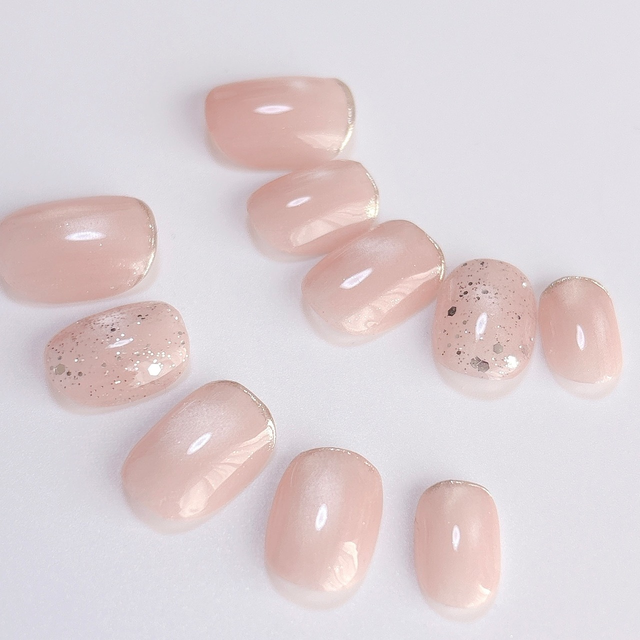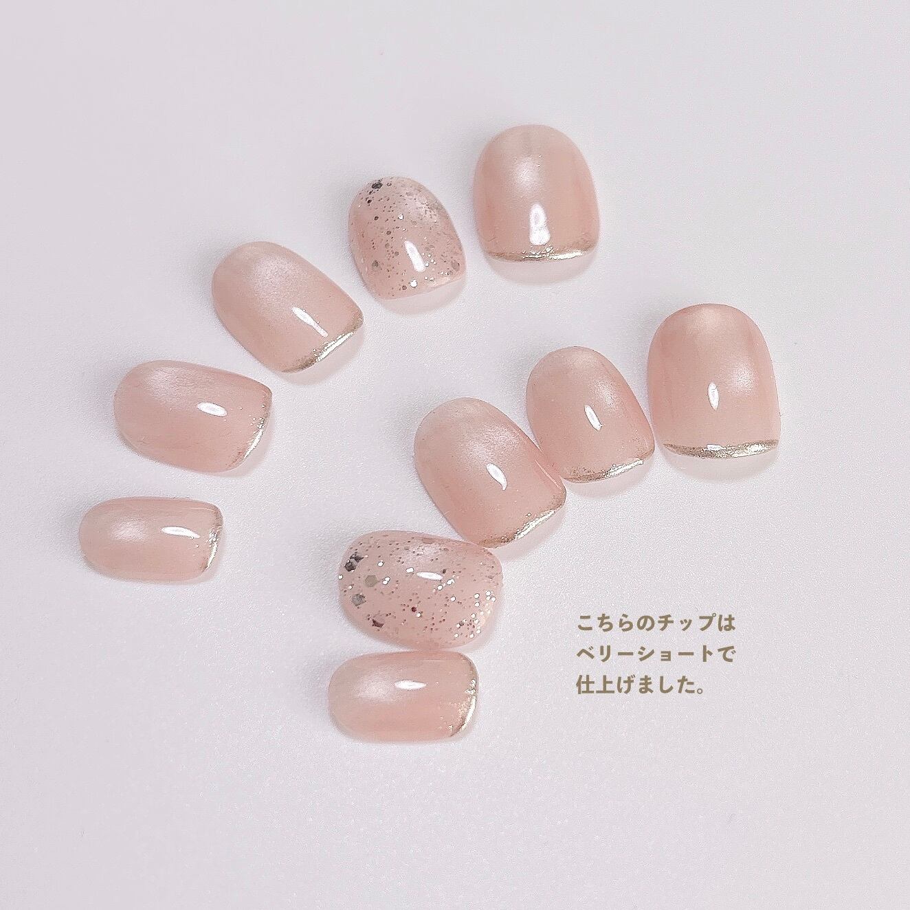 【恋を引き寄せる清楚カラー】ペールピンク マグネットネイル うるマグ ミラーフレンチ ゴールドラメ シンプル 春 淡色