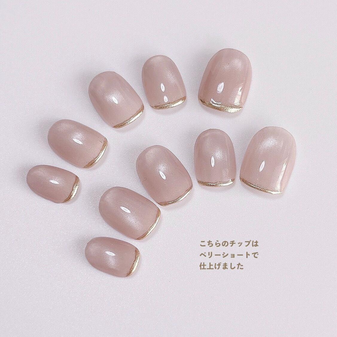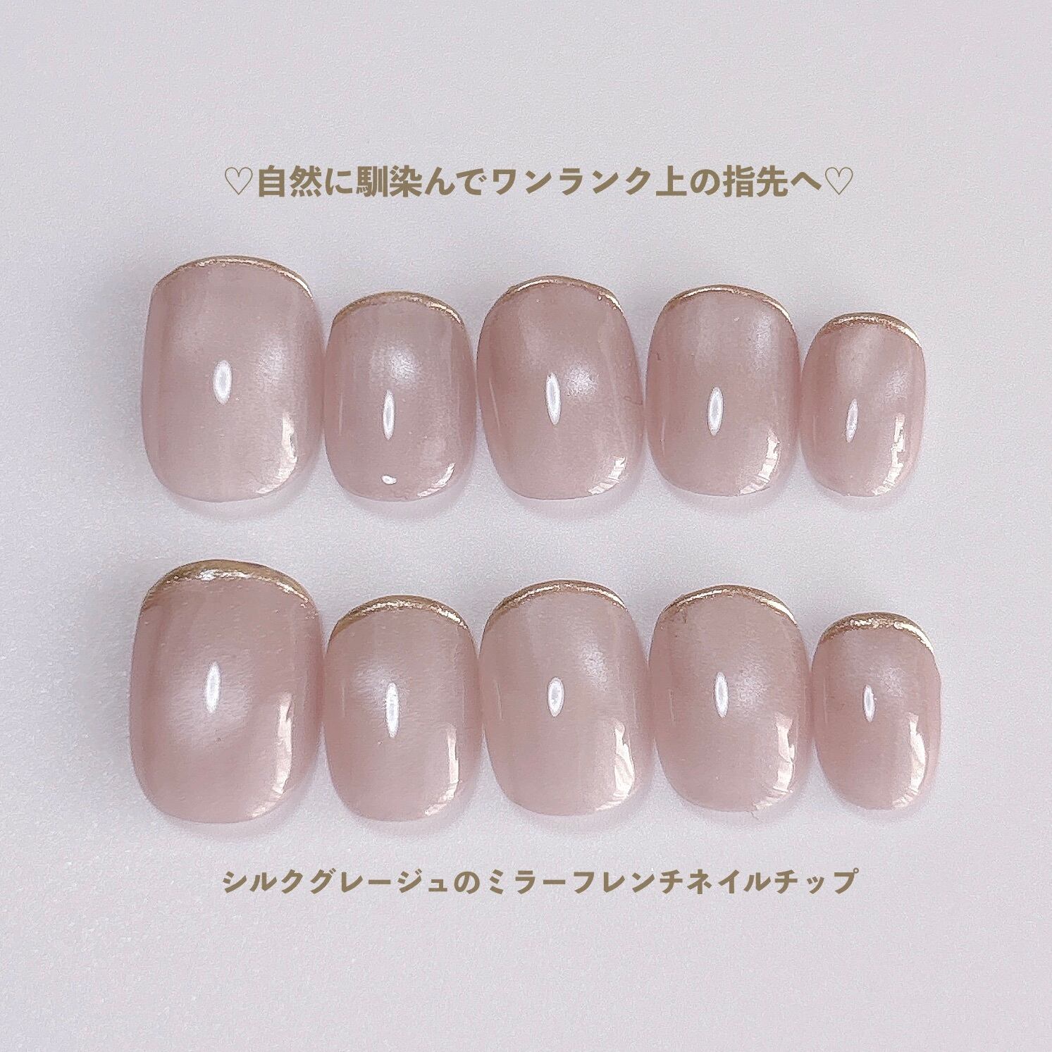【大人シックに彩る秋色】シルクグレージュ マグネット ミラーフレンチ ネイルチップ 春 秋 シンプル フォーマル