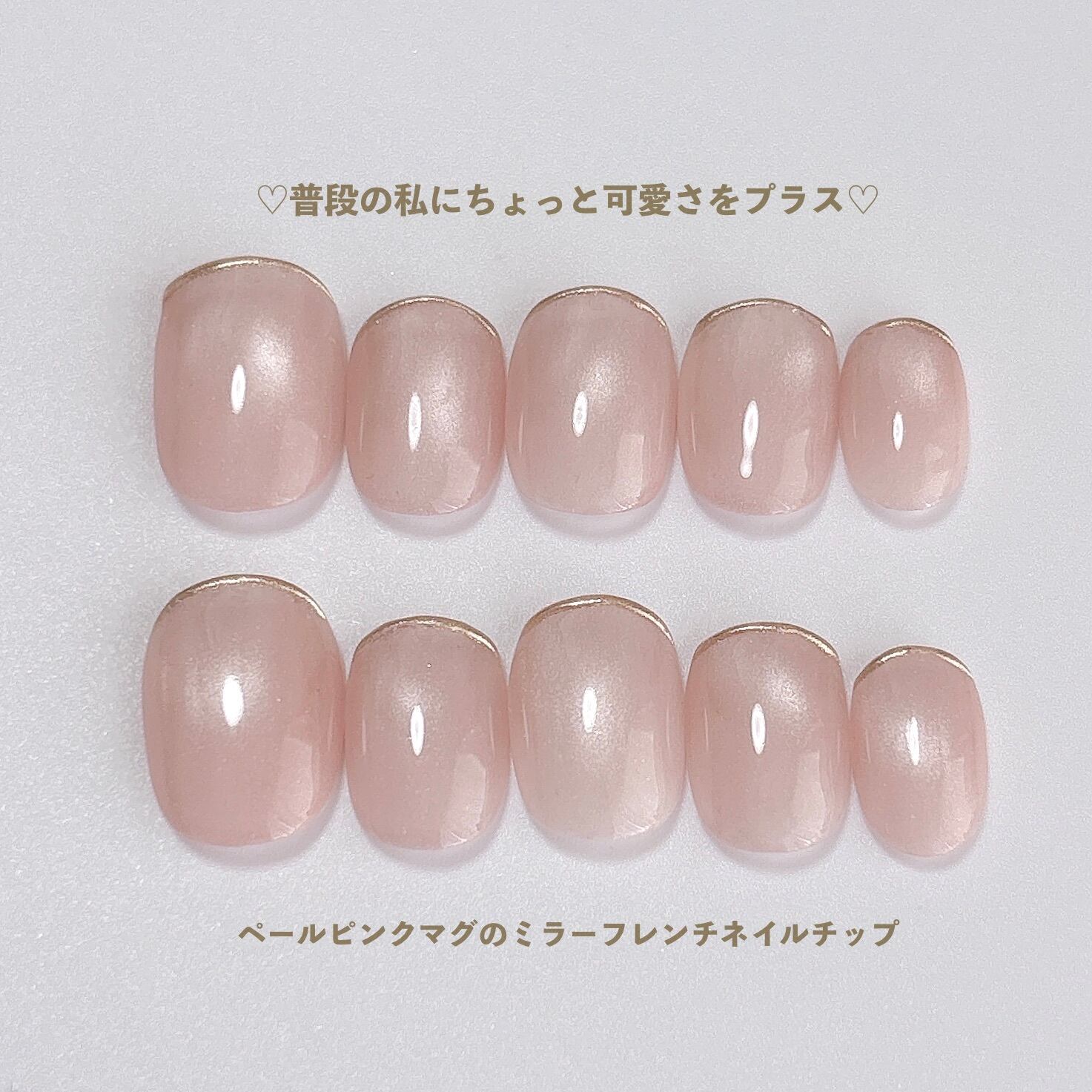 【大人可愛い最強モテカラー】ペールピンク マグネット ミラーフレンチ ネイルチップ 春 シンプル デート