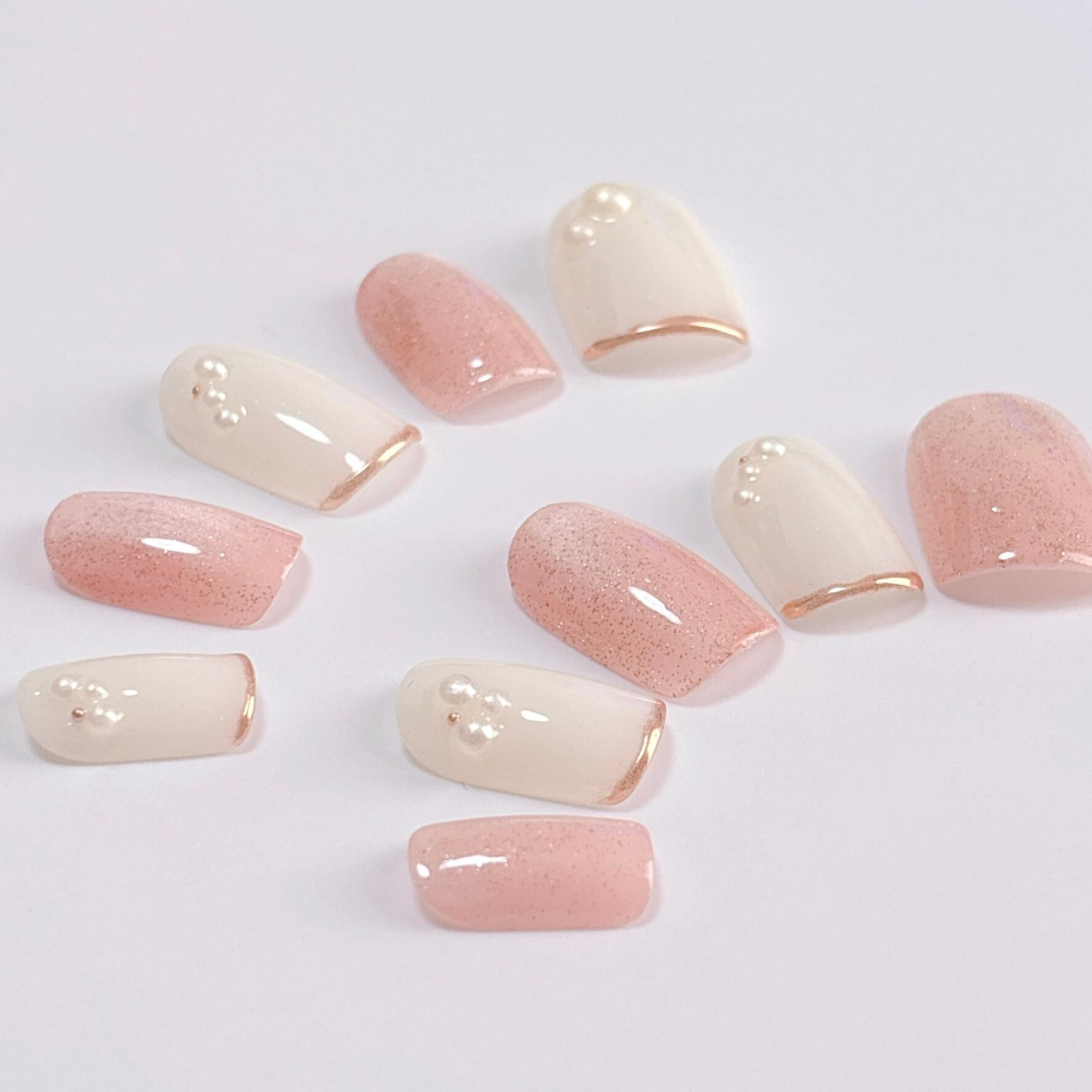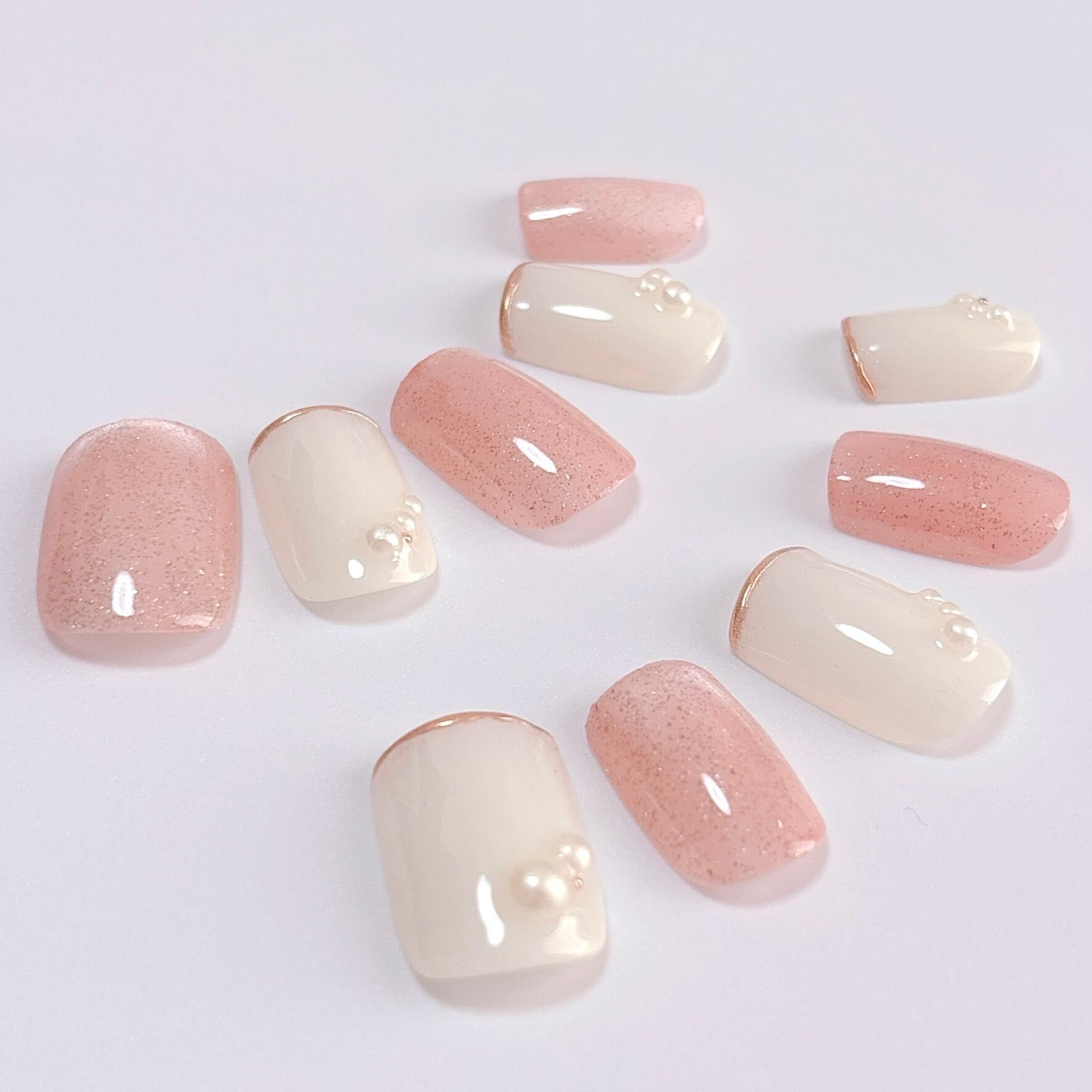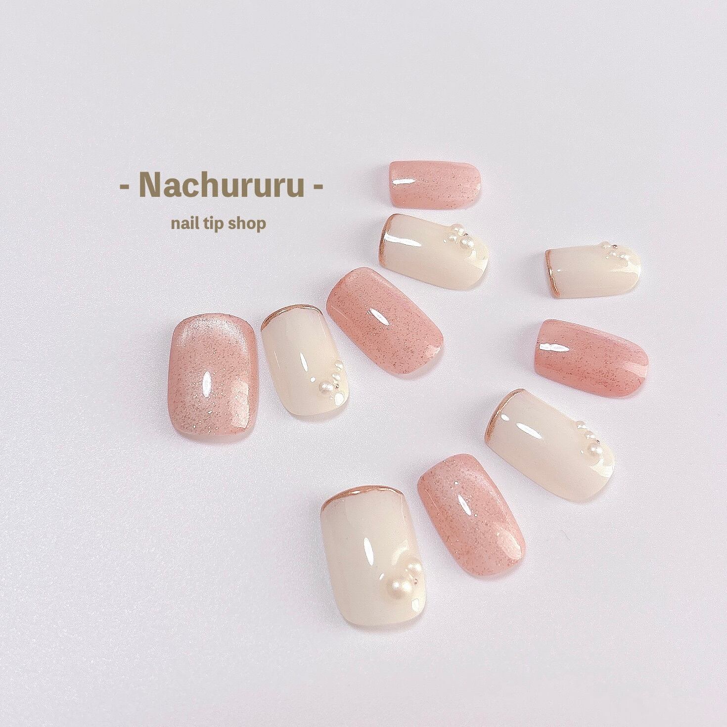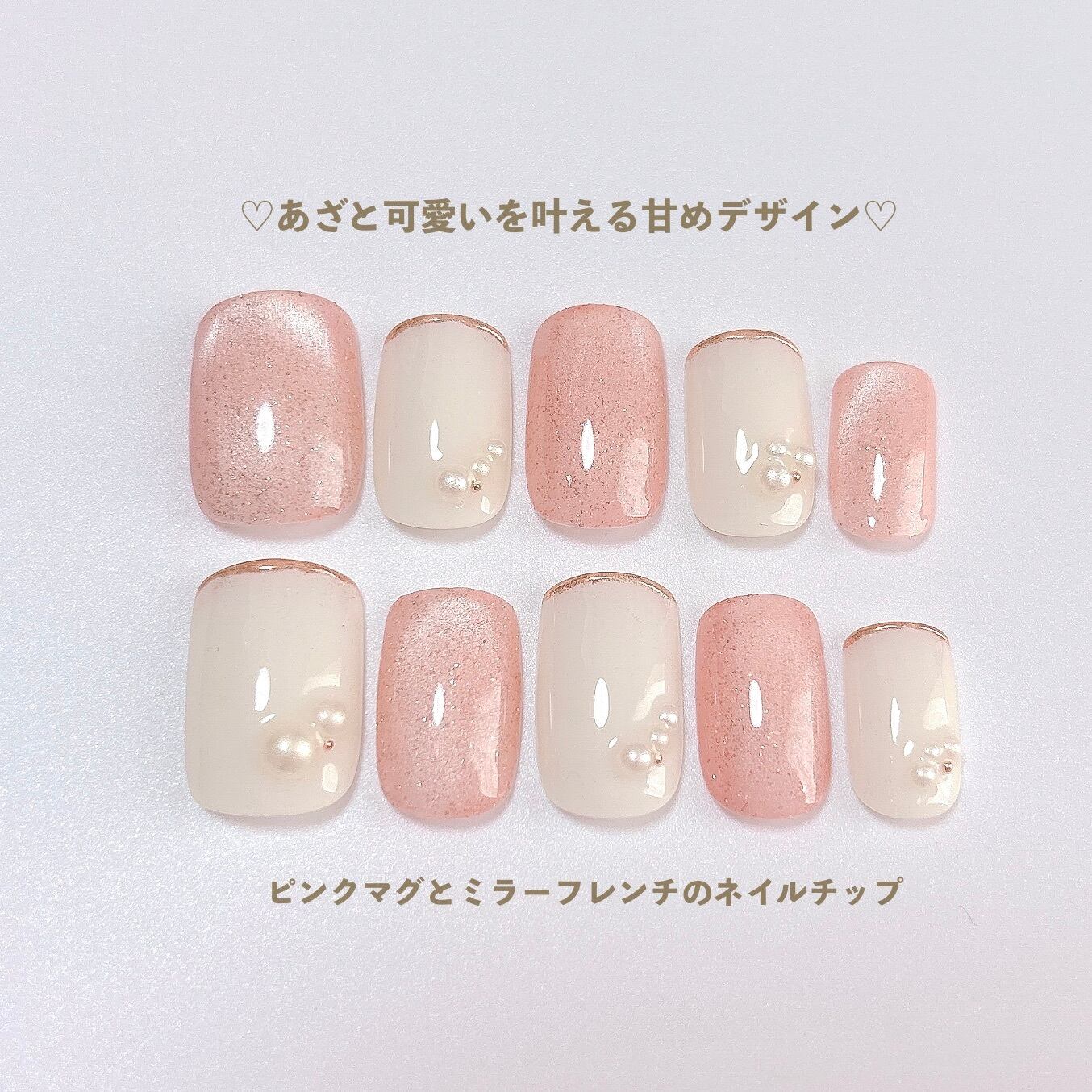 【ふんわり可愛い恋する艶感】ヌーディーピンク マグネット パール ミラーフレンチ ネイルチップ 春ネイル デート 女子会
