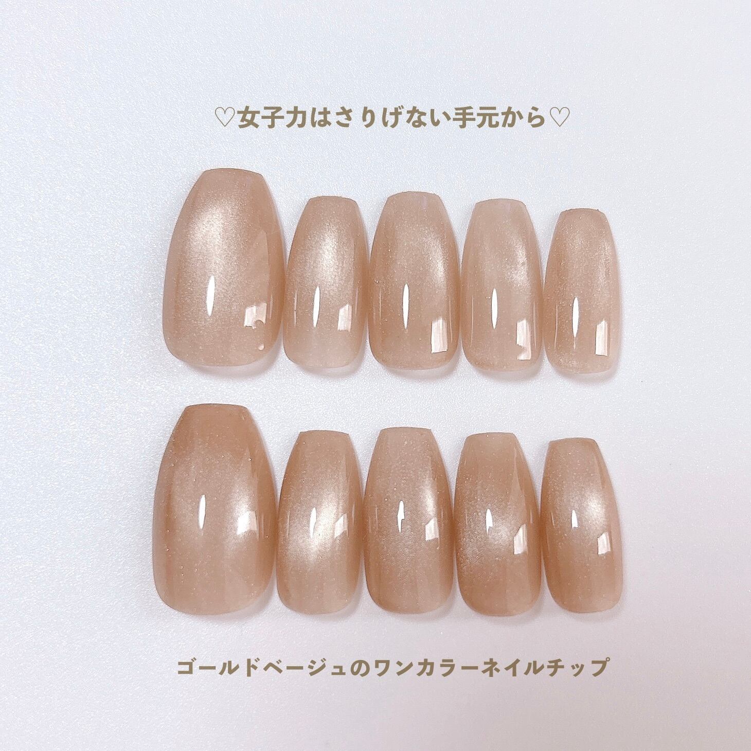 【シンプルなのに惹きつける】ゴールドベージュ マグネット ワンカラー ネイルチップ シンプル オフィス デート 春 秋