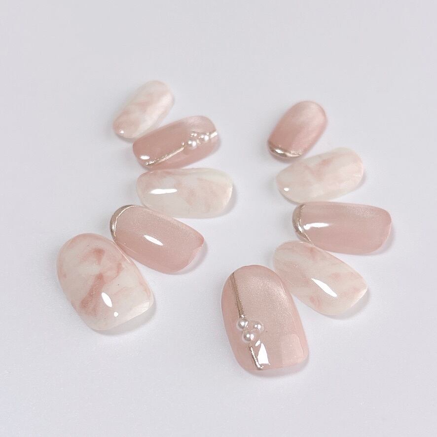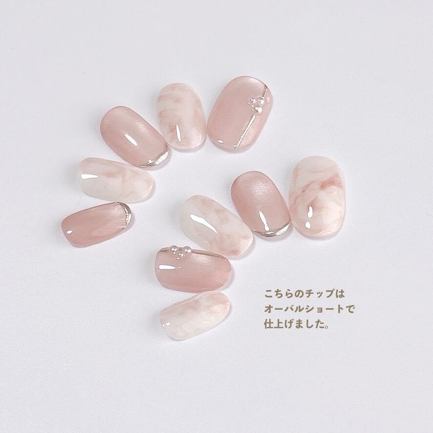 ペールピンクの繊細なマグネットの輝きとうるうる質感が指先を優しく包み込むネイルチップです。