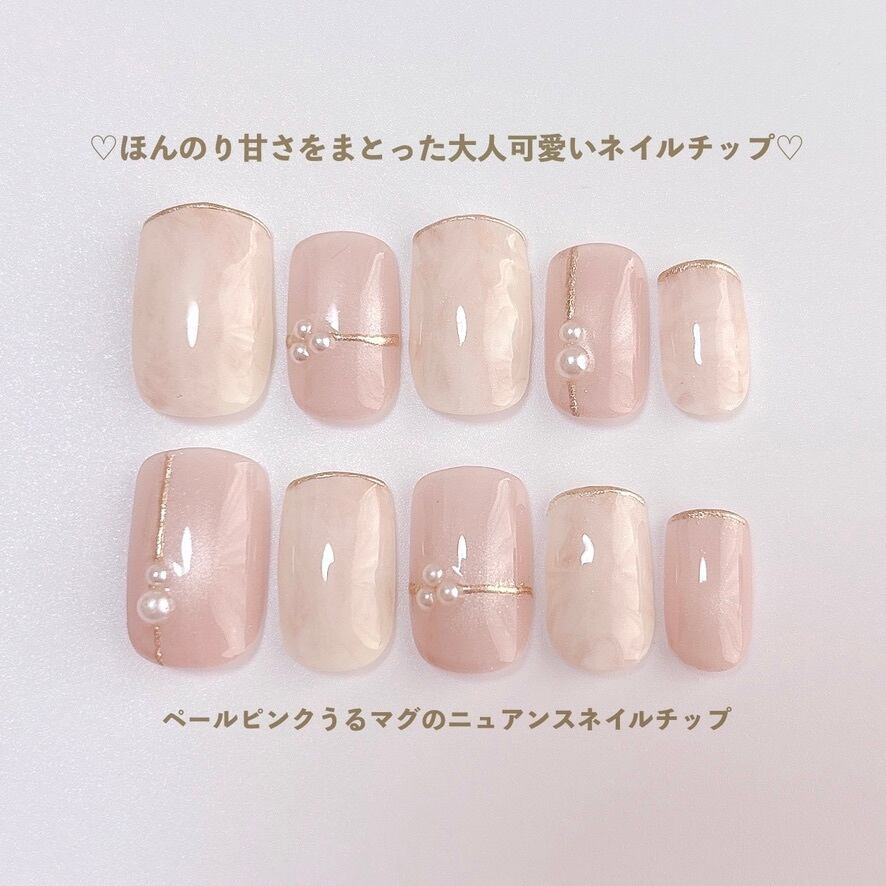 【033 現品販売】ペールピンク マグネット ニュアンス フレンチ 春 ネイルチップ ミラーアート