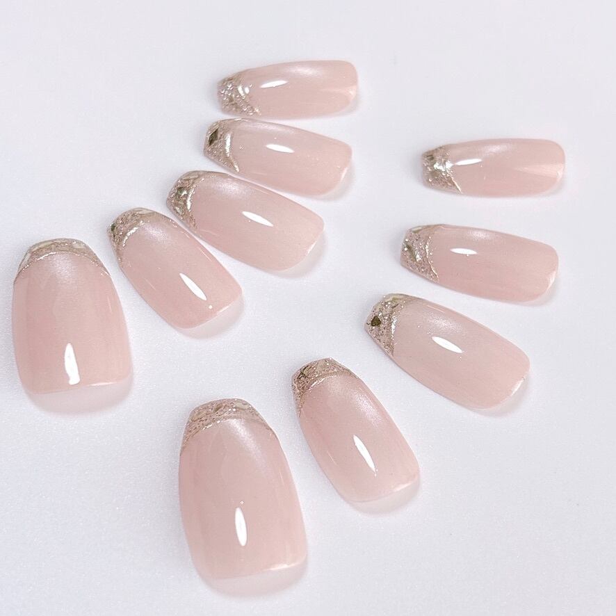 【047 現品販売】ペールピンク マグネット ガラスフレンチ シンプル バレリーナショート/結婚式 デート 春